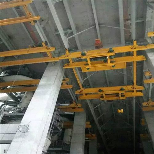 LXG型電動(dòng)懸掛過(guò)軌起重機(jī)是為大型火力發(fā)電廠輸磨煤系統(tǒng)而設(shè)計(jì)的專(zhuān)用起重設(shè)備。該設(shè)備主要用于吊運(yùn)磨輥及其它磨煤機(jī)部件,它還適用于連跨車(chē)間以及需要懸掛過(guò)軌的各種場(chǎng)所。起重機(jī)的機(jī)構(gòu)配置包括運(yùn)行機(jī)構(gòu)、橋架、電動(dòng)葫蘆、過(guò)軌裝置。